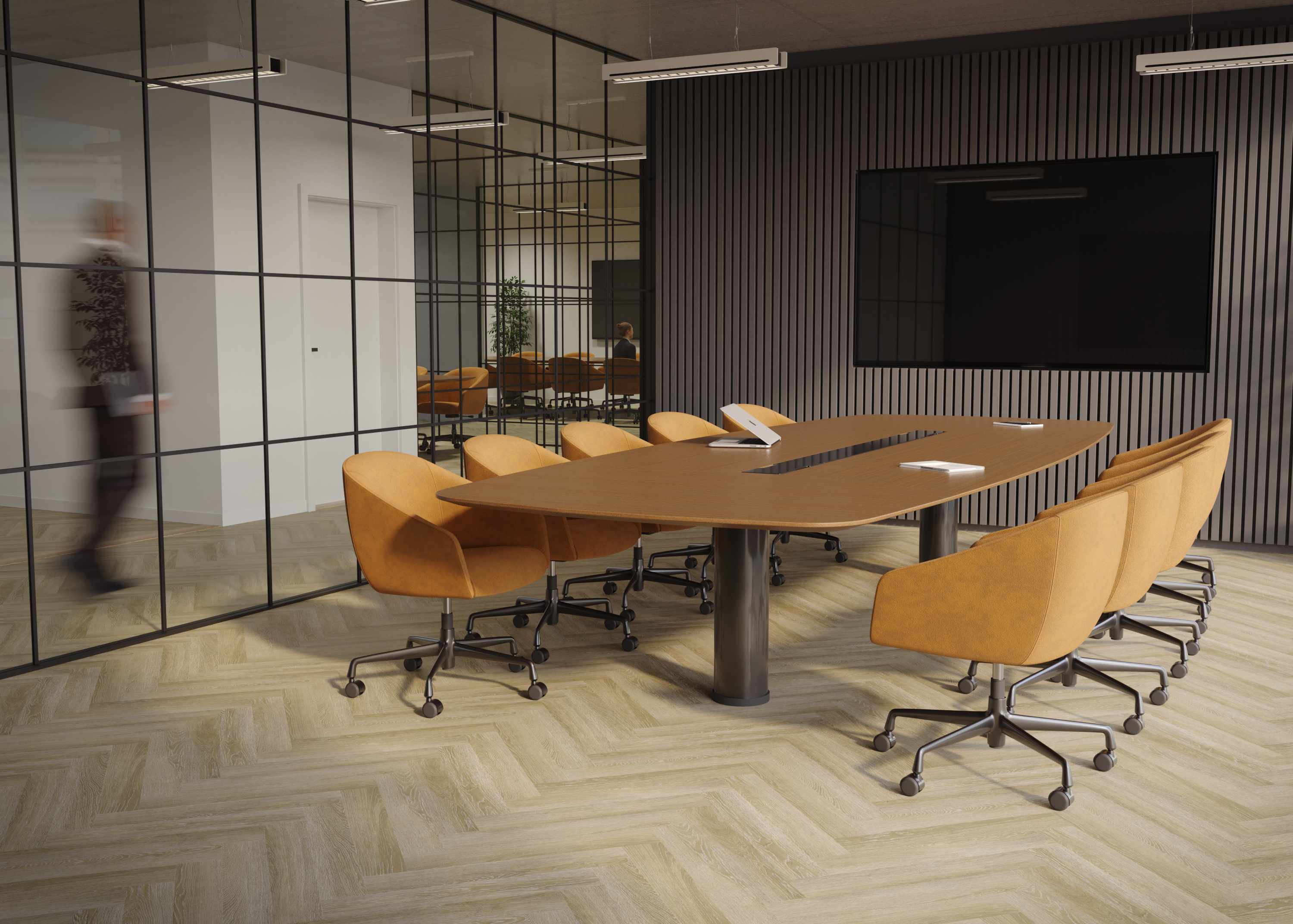 Disponible en tres formatos, tablón y espiga con un acabado cálido de madera, o loseta para un efecto piedra más mineral, el Dryback 55 se presenta en 20 referencias. Una paleta rica y armoniosa diseñada para combinarse con alfombras u otros revestimientos LVT, ofreciendo total libertad de diseño.