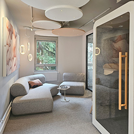 Balsan colabora con la arquitecta de interiores Angélique Pursad en la renovación del showroom Rockfon “Le 111” y los espacios colectivos de Rockwool en París. Un proyecto que redefine el espacio de trabajo como un lugar de vida e intercambio, centrado en la experiencia del empleado.